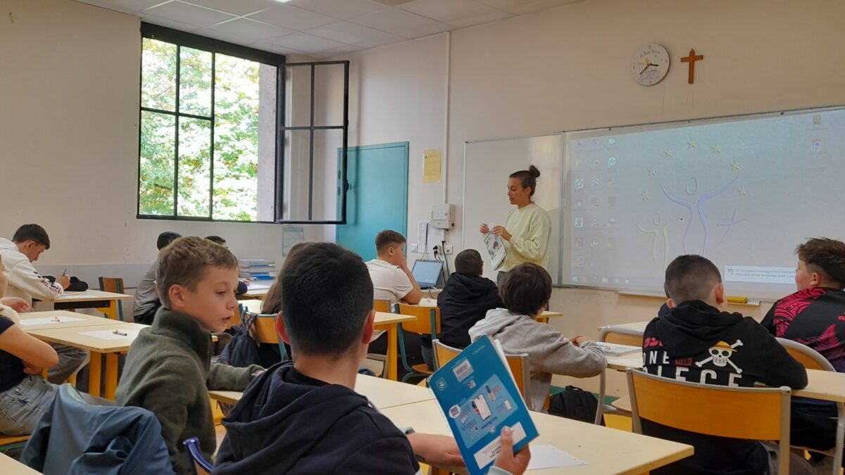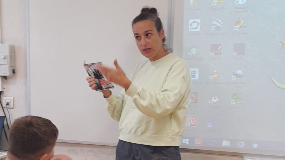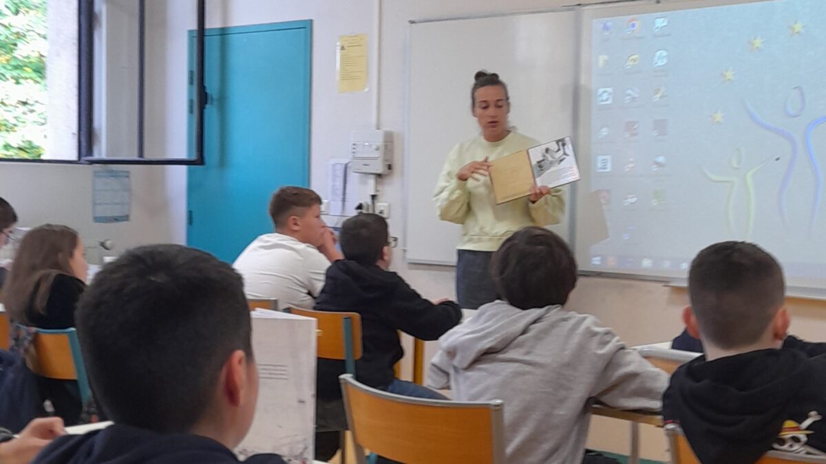 Le vendredi 7 novembre, l’autrice Adèle Tariel est venue présenter son dernier album, Peuple de plumes, à des élèves du collège Bossuet à Brive. C’est une histoire pour la planète : Gloria, l’héroïne, veut sauver le peuple de plumes, cloué au sol dans un monde pollué alors que les hommes habitent le ciel dans des demeures suspendues. La première de couverture est très belle et a incité plusieurs d’entre nous à lire son aventure avant l’arrivée de Madame Tariel.