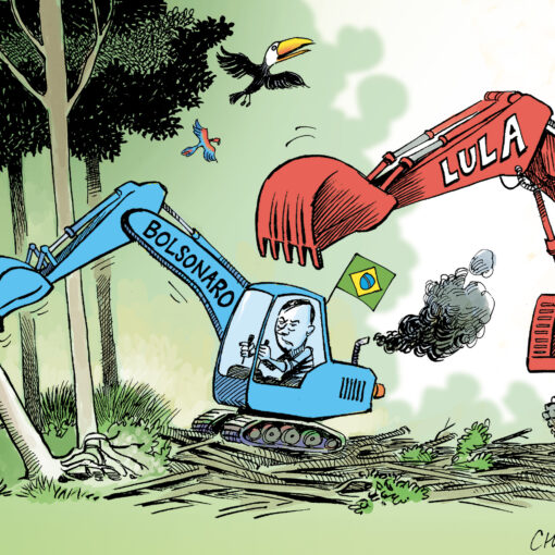 Mais, depuis ces dernières années, cette richesse est mise en danger par l’activité humaine dont la déforestation excessive, l’exploitation agricole, l’extraction minière, les très nombreux incendies. Plus elle est détruite et plus elle rejette du dioxyde de carbone dans l’atmosphère, ce qui aggrave le réchauffement climatique : désormais, elle rejette plus de carbone qu’elle n’en consomme. La forêt amazonienne est menacée par le gouvernement brésilien de Jair BOLSONARO, qui soutient massivement la déforestation, le développement intensif de l’agriculture et de l’élevage, l’extraction minière. Depuis son arrivée au pouvoir en 2019, la déforestation moyenne annuelle en Amazonie a augmenté de 75% par rapport à la décennie précédente. La politique menée par BOLSONARO encourage l’action des industriels et leur avidité financière.