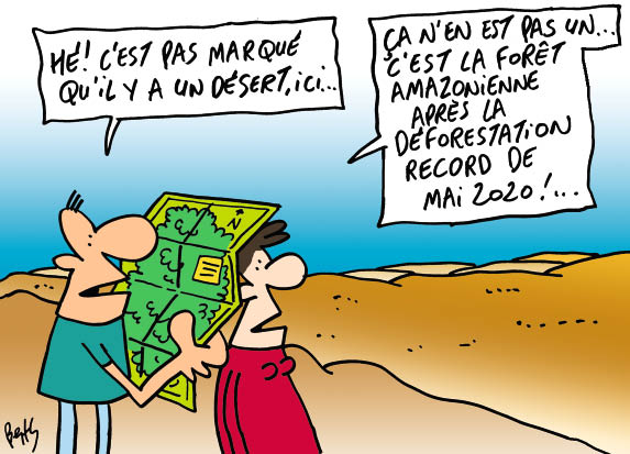 La forêt amazonienne (située en Amérique du Sud, au Brésil pour une grande part) est la plus grande forêt tropicale de la planète et abrite une biodiversité exceptionnelle et très diversifiée. Ce trésor, appelé « poumon vert de la planète », est détruit année après année : plus de 20 % de sa surface a disparu. Elle est sans cesse mise en danger par l’activité dévastatrice du président Jair BOLSONARO qui soutient la déforestation et favorise le développement de l’agriculture et de l’extraction minière. Les incendies sont de plus en plus nombreux et sont très dévastateurs; ils sont causés par la déforestation de plus en plus importante, par la sécheresse et le réchauffement climatique qui est un facteur aggravant. Comme cette forêt joue un rôle essentiel dans la stabilité du climat mondial, la situation est catastrophique, car, dans 50 ans, elle aura totalement disparue, si rien n’est fait. L’urgence est absolue, il est temps d’agir, avant d’atteindre le point de non retour.