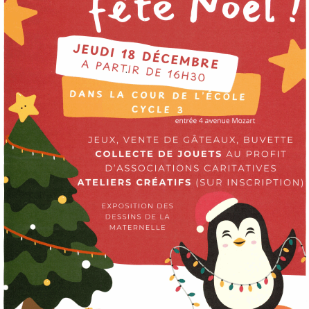 ** Save the date ! L’APE fête Noël ** Rendez-vous le jeudi 18 décembre à partir de 16h30 à l’école Ateliers
