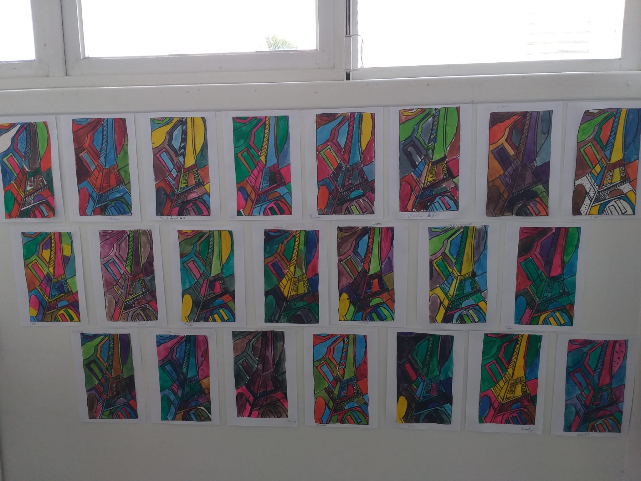 CE1 C Mme PégourdieMusée virtuel CE2B : Arts plastiques – « A la manière de Delaunay… » 29 septembre 202220 novembre 2022 « Tour Eiffel » à la manière de Delaunay par les élèves de la classe de CE2B :
