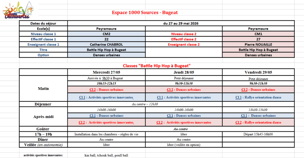 CM1A/CM2B : Séjour ODCV « Battle Hip-Hop »- Bugeat du 27 au 29 mai