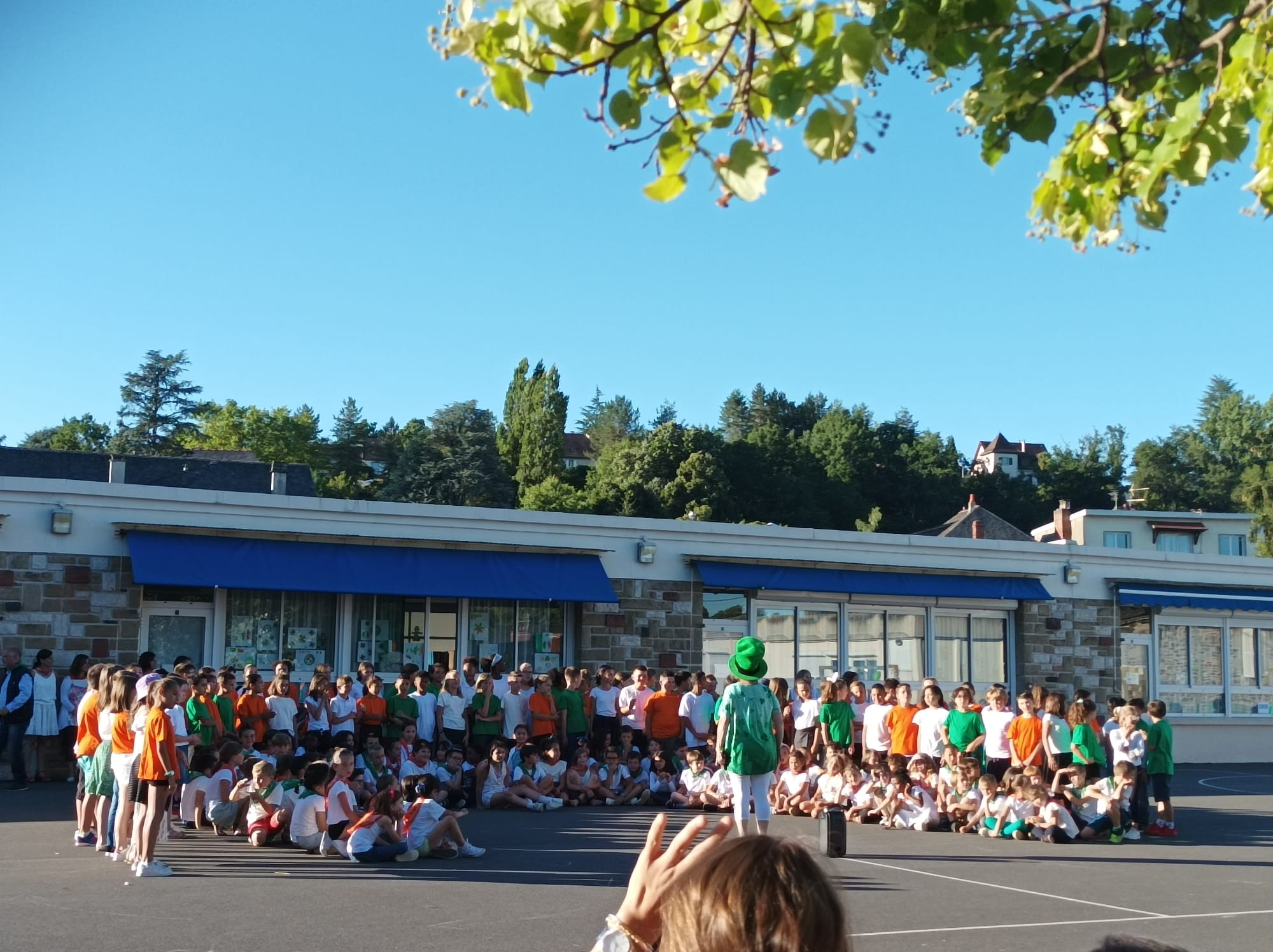 La fête de l’école s’est déroulée le vendredi 1er juillet et elle avait pour thème l’Irlande en liaison avec un projet Erasmus. Dans le cadre de ce projet Erasmus, deux enseignantes de l’école ont participé à un stage de 2 semaines à Dublin au cours du mois de juin, ce qui leur a permis de faire partager leurs connaissances sur l’Irlande à leur retour.