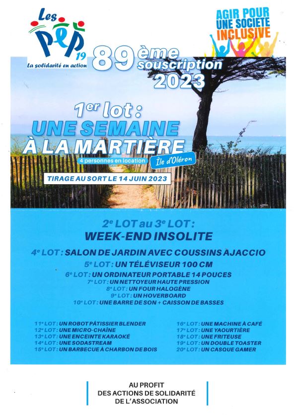 Les PEP 19 organisent une souscription (1 € le billet) au profit des actions de solidarité de l’association.