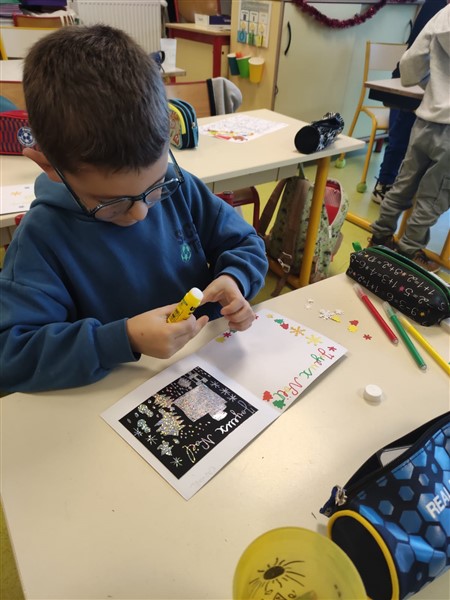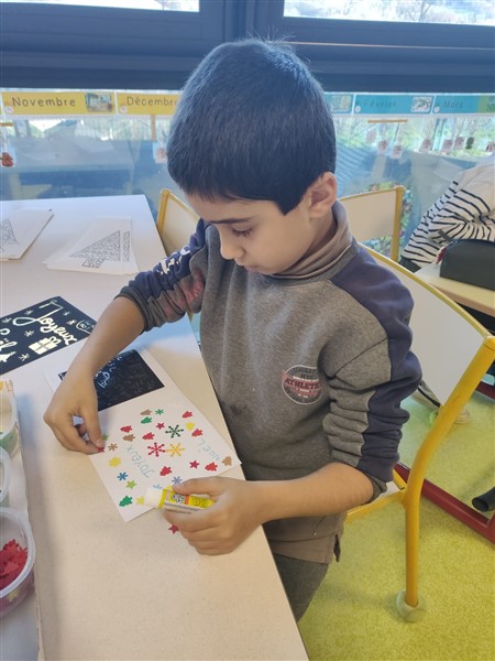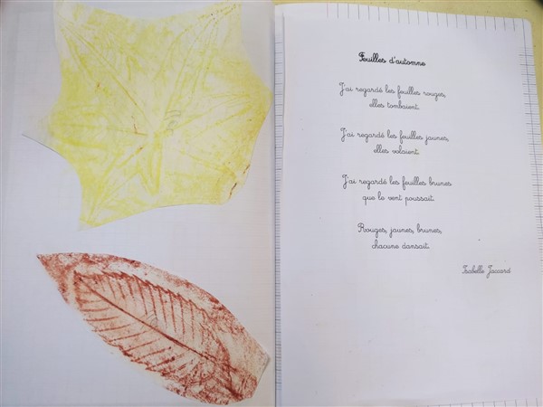 Voici le travail en art plastique de cette fin d’année des CPCE1: illustration de la poésie avec des empreintes de feuilles à la craie grasse, peinture à la brosse à dents et sapin colorié, création d’objets de Noël en plâtre et carte de Noël.