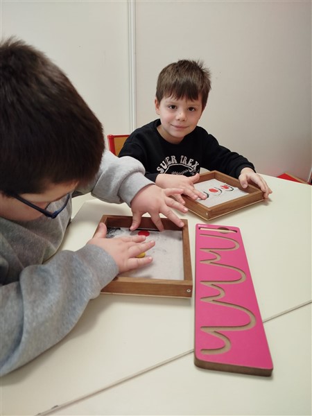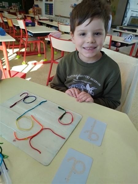 En Grande Section, on commence l’écriture attachée. Les élèves sont très fiers d’apprendre l’écriture des grands.😊