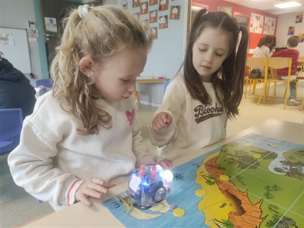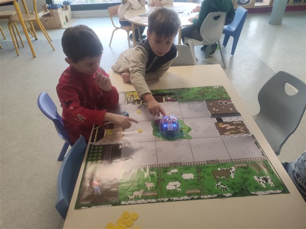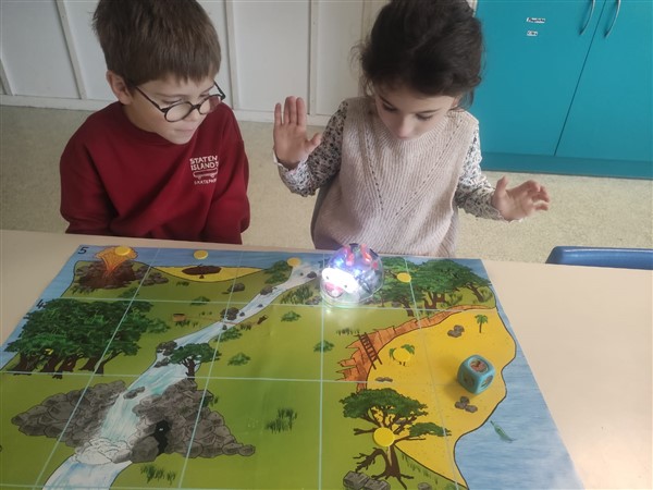 Les élèves de CP-CE1 se sont initiés à la programmation lors d’une 1ère séance de travail avec les Blue-Bot. Sur les photos, également des ateliers lecture, maths et même mesures pour les CE1.
