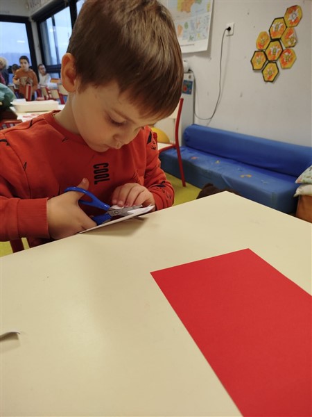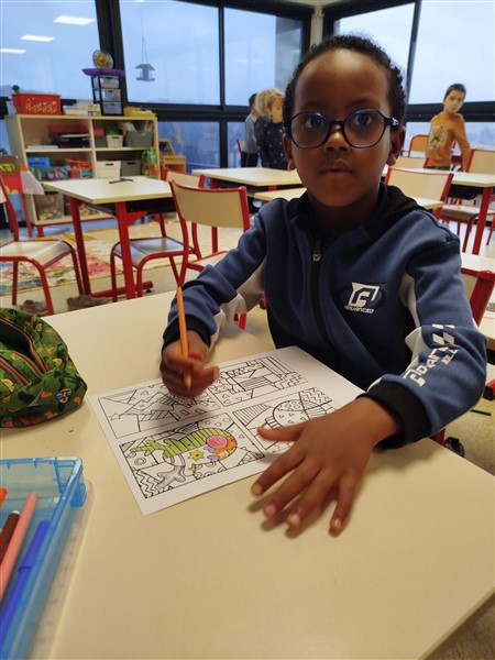 Les élèves ont entrepris la création de cartes qui serviront de cartes porte-menu et décoreront les tables du repas du club du 3ème âge.