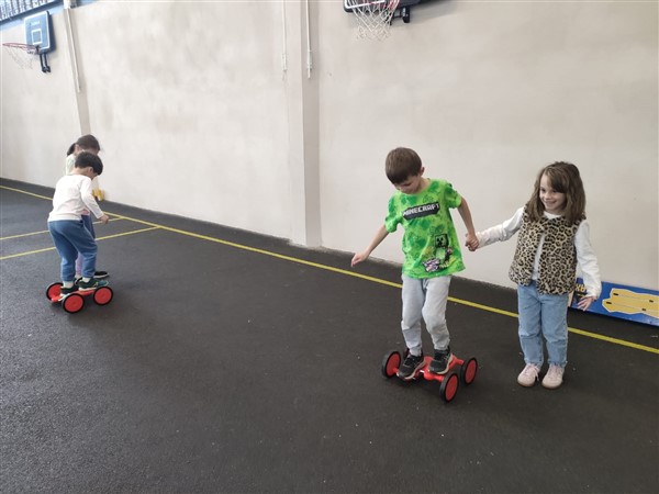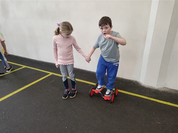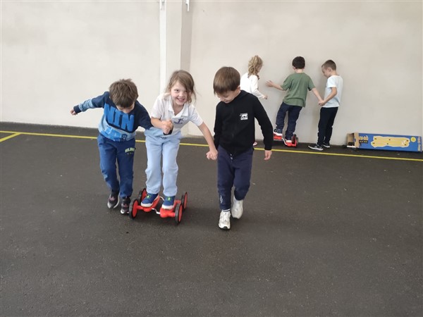 Les élèves de la classe de CP-CE1 ont découvert quelques ateliers de cirque: pédalgo, rolla bolla, les assiettes chinoises et le jonglage de balles à 2. Rien n’est facile mais la découverte a plu aux élèves.
