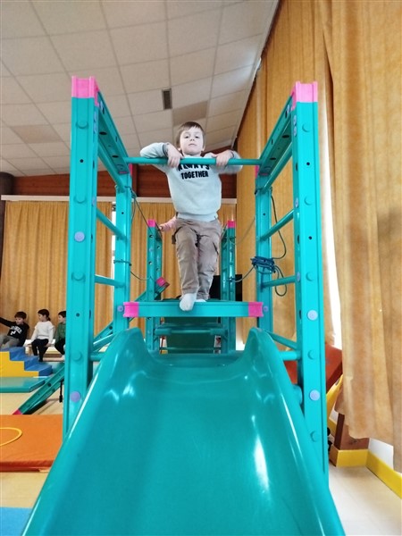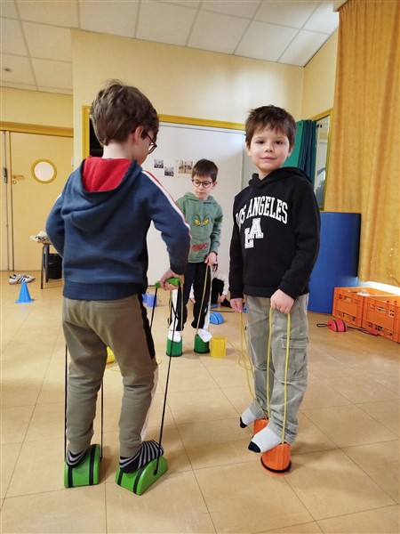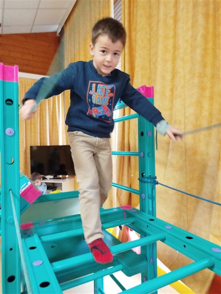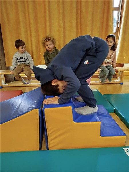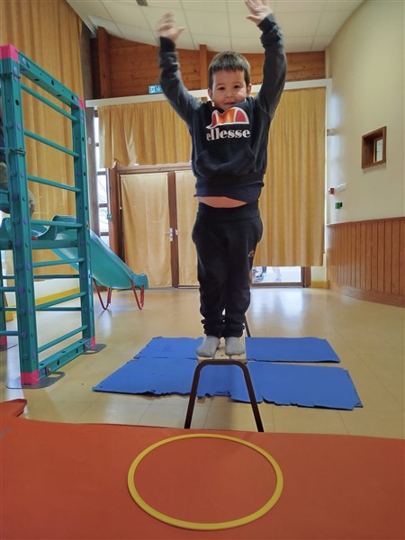 Sauter, courir, grimper, s’équilibrer, rouler…les GS-CP expérimente l’activité gymnastique avec dynamisme et envie.