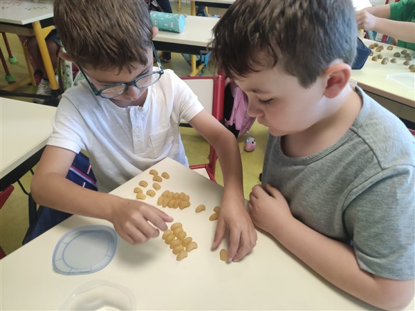 Les élèves de CP ont fait un travail de manipulation de matériel autour de la notion de dizaine.
