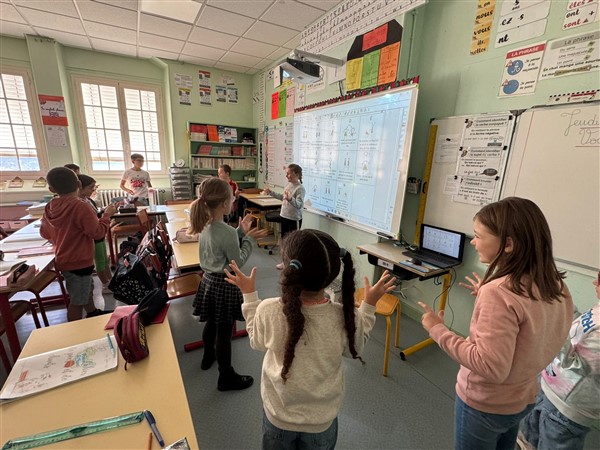 Pour permettre au corps et à la tête de faire une pause, les élèves de CE2 s’activent sur le rythme d’une chanson en anglais qui fait actionner différentes parties du corps. Viennent ensuite une phase visant plusieurs actions motrices précises… Continue Reading →