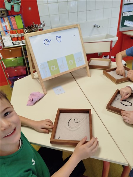 Les élèves de GS ont travaillé sur les écritures des lettres et ont découvert l’écriture cursive à travers différents ateliers de manipulation et de jeu.