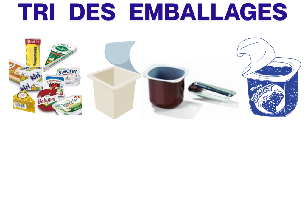 Les élèves ont aussi mis un affichage pour trier les emballage de fromages et yaourts dans une poubelle et pas dans la poubelle marron..