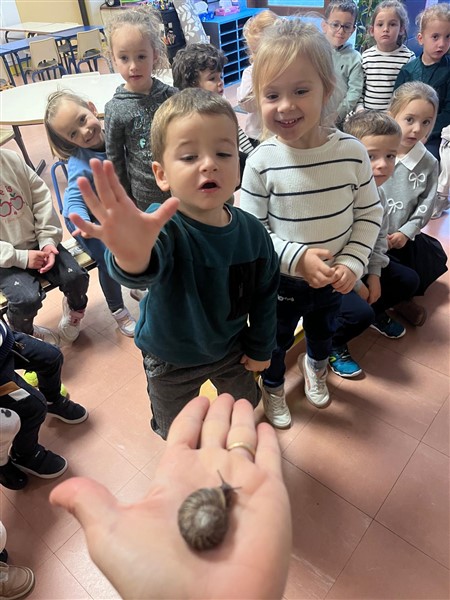 Des escargots ont fait leur rentrée en classe de petite et moyenne section. Voici quelques images de leur arrivée. Ils sont là pour quelques mois, le temps de bien les observer, les nourrir et comprendre comment ils vivent.