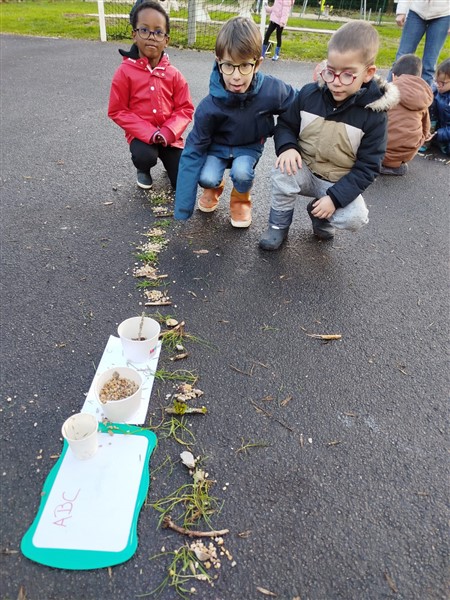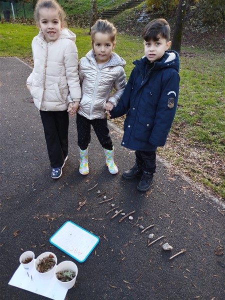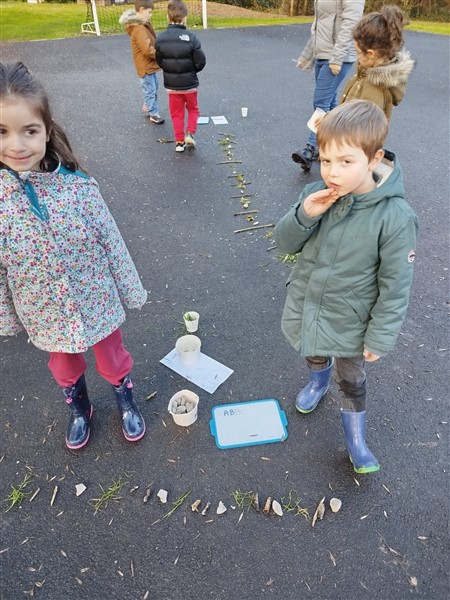 Activité commune aux deux niveaux mais des niveaux de difficulté différents: élaboration d’algorithmes avec des éléments naturels.