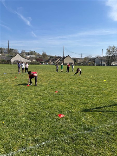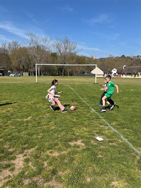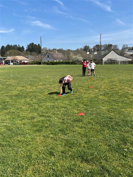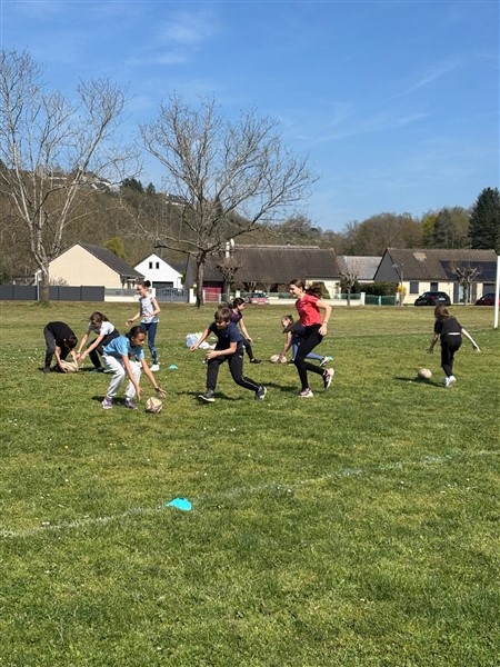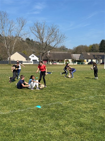 Les élèves de CM2 sont allés au stade de Donzenac pour un entraînement de rugby. Différents ateliers servent à se perfectionner et une phase de match permet d’e mettre’essayer toutes les attitudes apprises.