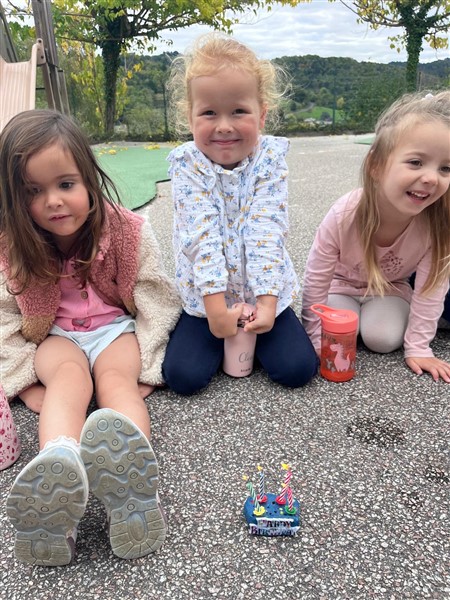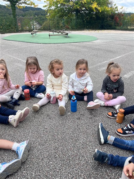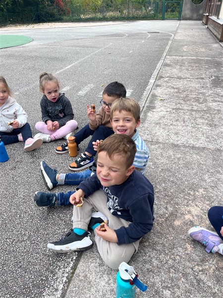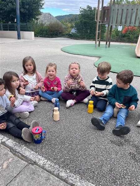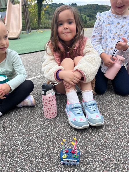 Zoé et Cléa ont fêté leur anniversaire à l’école avec un petit goûter à l’extérieur.