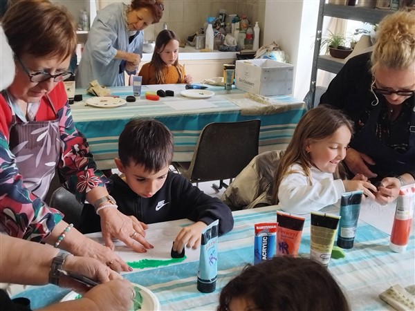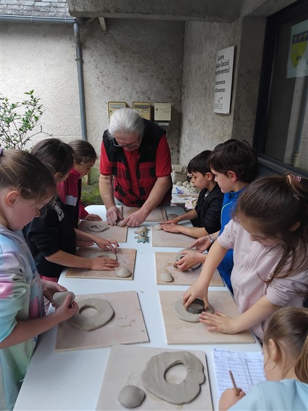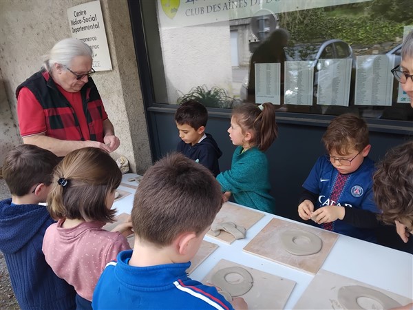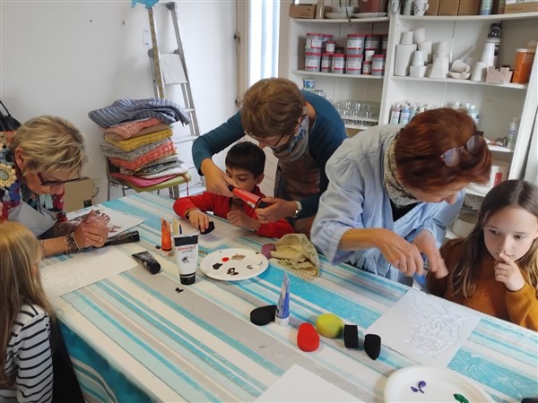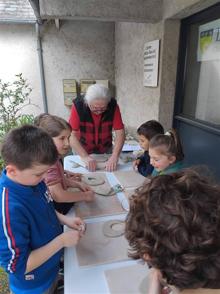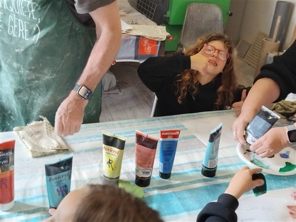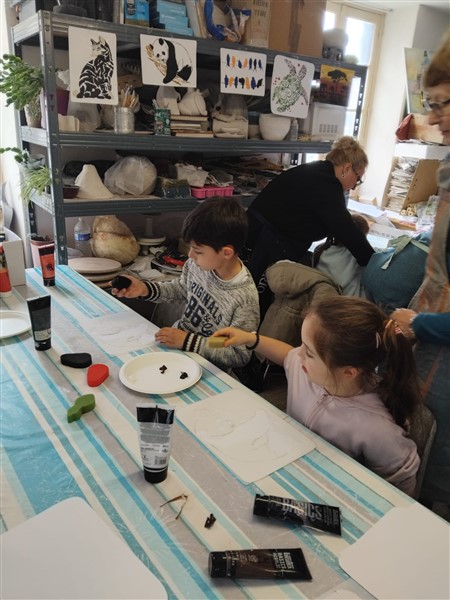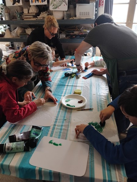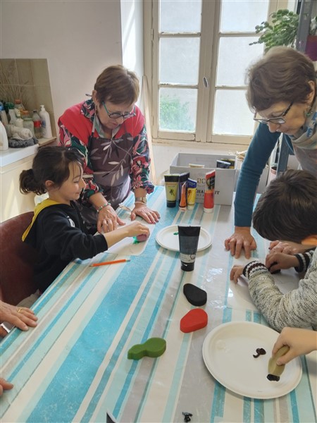 Les élèves ont été accompagnés dans la visite de l’exposition par des membres de l’association. Les élèves ont aussi pu faire un atelier peinture avec des pochoirs et une activité modelage.