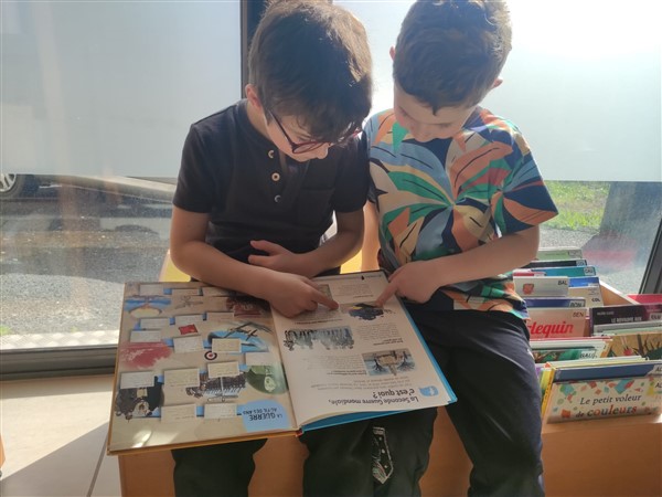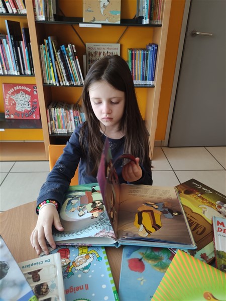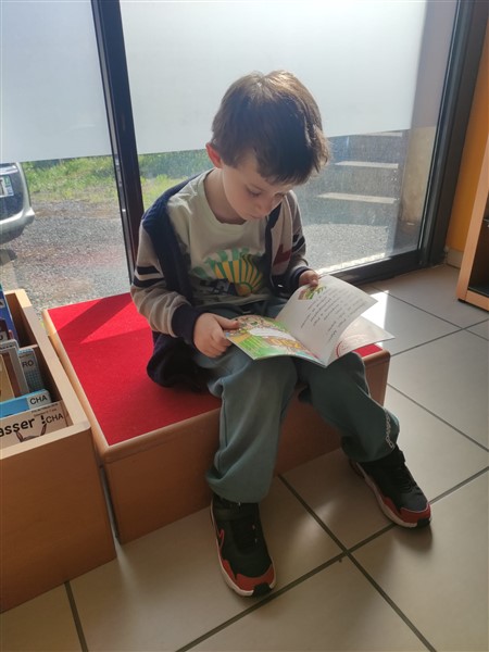 Les élèves de la classe de CPCEA sont allés à la médiathèque ce vendredi. D’abord, une lecture offerte par Valérie Bédrune, bénévole de l’association Lire et faire lire, puis chacun peut trouver le livre qu’il veut lire et s’installe pour un moment de lecture très apprécié.