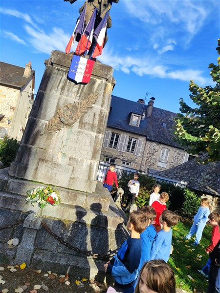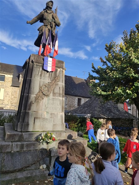 Les élèves de la classe de CP sont allés sur la place de la mairie pour observer le monument aux morts.