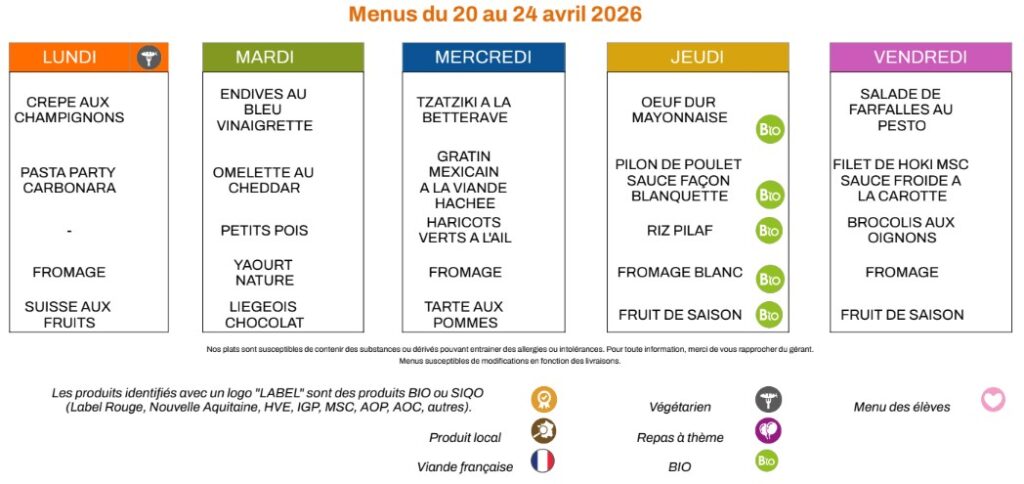 Menus du restaurant scolaire