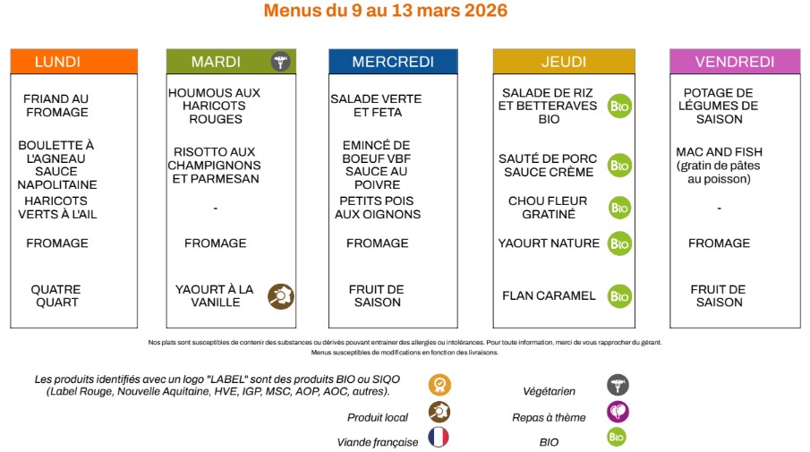 Menus du restaurant scolaire