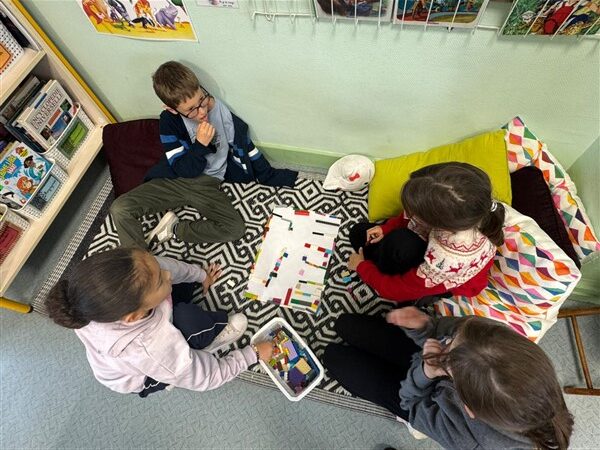 Depuis la rentrée, en espace, les élèves de CE2 travaillent sur l’école. Leur représentation a beaucoup évolué. L’aboutissement a été d’élaborer, par groupe, une maquette à partir de laquelle chacun a pu comprendre comment passer d’une représentation en volume d’un espace à son plan.