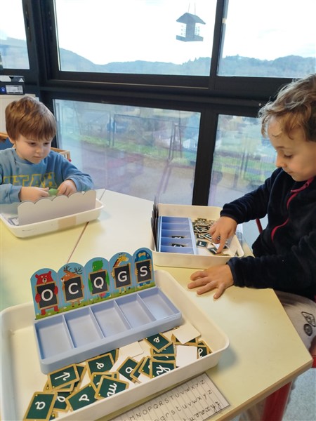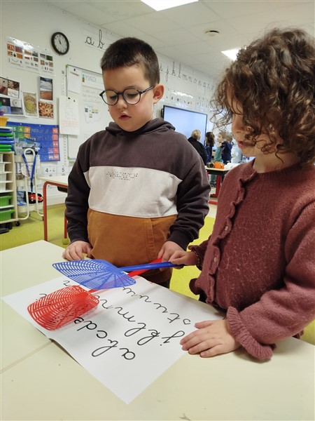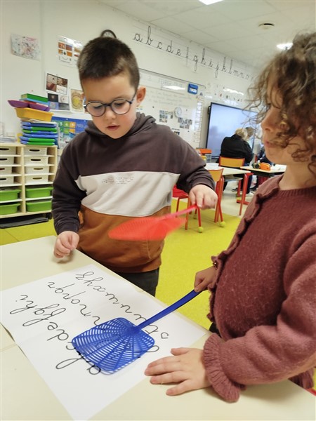 Les élèves de GS ont travaillé sur les écritures des lettres et ont découvert l’écriture cursive à travers différents ateliers de manipulation et de jeu.