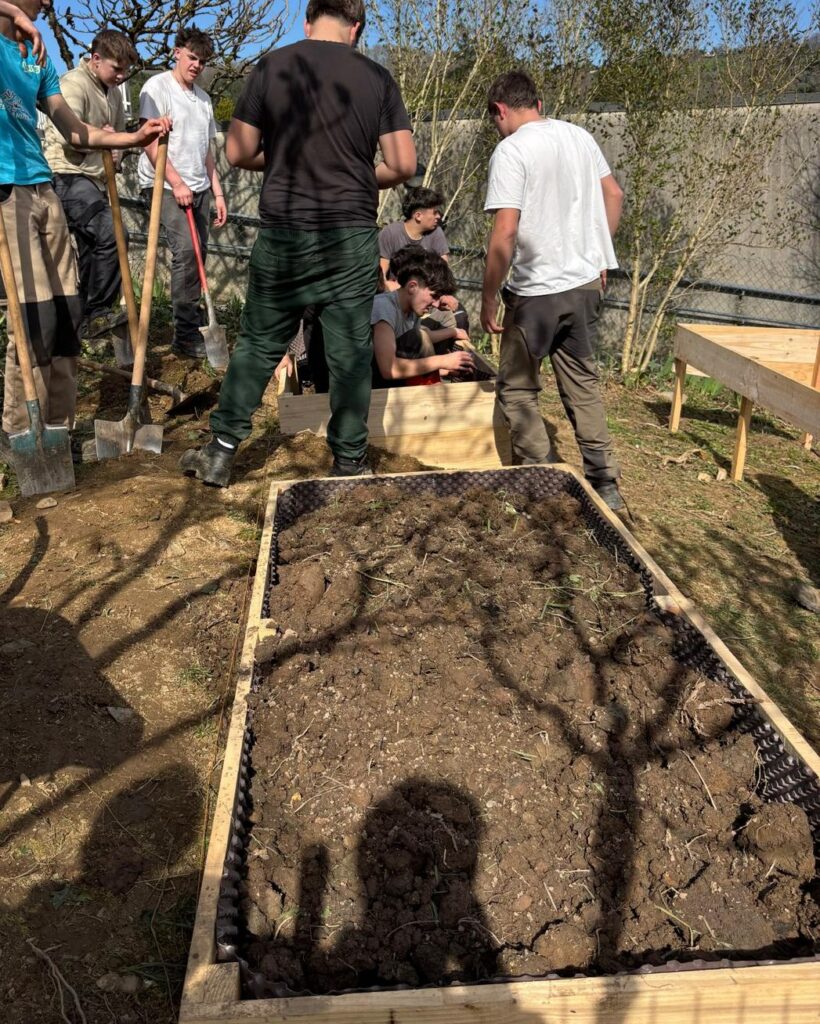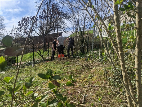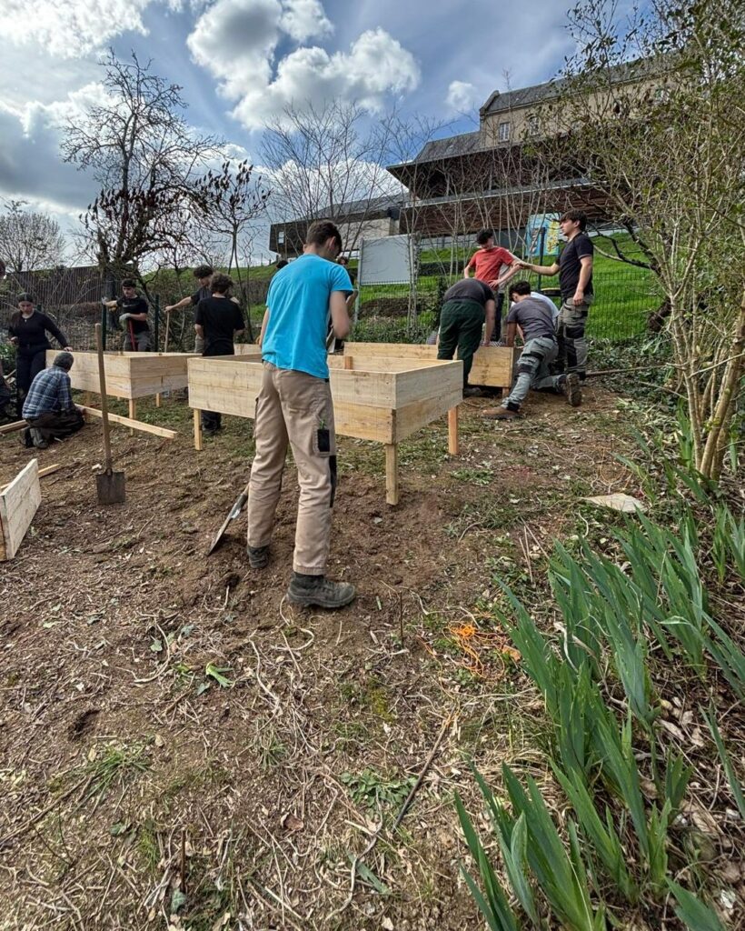 Ce projet de jardin à l’école était en sommeil. Grace au partenariat avec le lycée agricole d’Objat, voilà qu’il reprend vie. Les lycéens sont venus recueillir nos souhaits et dans le cadre de leur projet d’étude, ils ont imaginé et dessiné le jardin. Ils ont réalisé des bacs, nettoyé la parcelle, taillé et arraché pour donner toute la place au jardin.