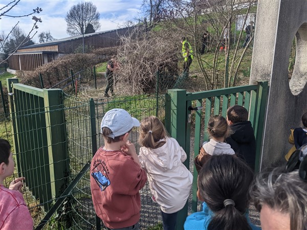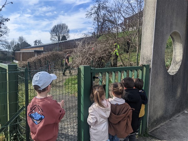Les élèves de maternelle étaient aux premières loges pour assister à ce grand chantier.