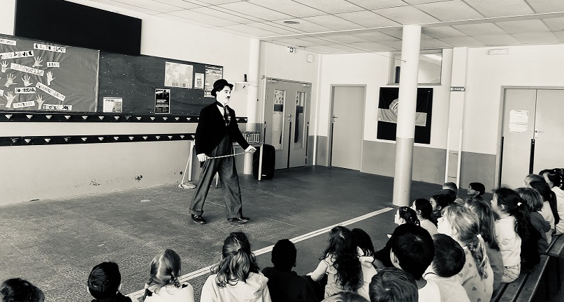 Lundi 31 mars, les élèves ont assisté à un spectacle du « sosie officiel » de Charlot. Merci encore à Anthony Champeil, sosie de Charlot, d’avoir offert aux élèves ce moment de magie. Et merci à Patricia Millaud d’avoir organisé ce spectacle.