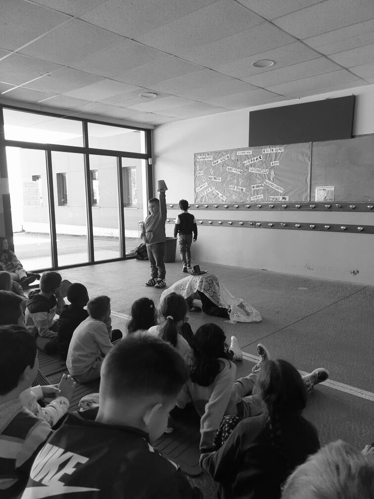 Au début, « Charlot » s’est présenté. Il nous a posé des questions, pour savoir si nous connaissions ce personnage. Il nous a présenté les dix premières minutes de son spectacle qu’il présentera le sept mai. C’était drôle. Il a pris des gens du public pour venir sur scène. Ensuite, il a pris un élève pour qu’il joue son rôle. Après, il nous a présenté un sketch, celui du facteur. Le facteur, joué par un élève, lui donne une lettre. Charlot est content et il lui donne des billets. Ensuite, l’acteur fait un câlin au facteur, il vole discrètement les billets dans la poche du facteur. C’était une super ambiance !!!