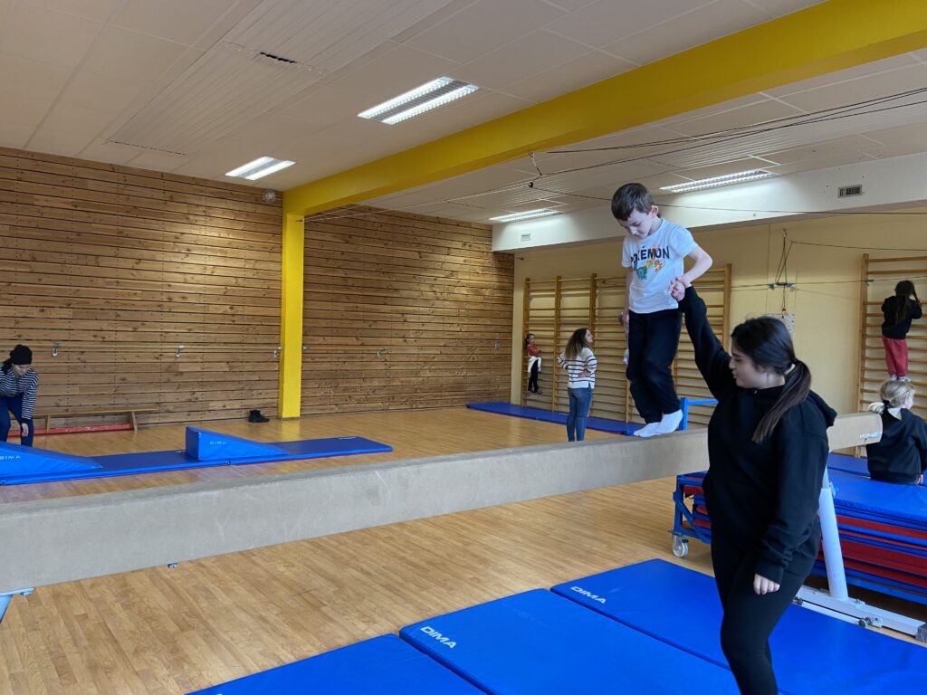L’après-midi, c’était la dernière séance au gymnase des Combes d’Egletons. Au programme : ateliers saut/roulades/espaliers/poutre haute dans la salle des agrès et des jeux d’opposition dans le dojo. Bravo à tous ces jeunes sportifs et un grand merci aux adultes accompagnateurs pour leur aide!