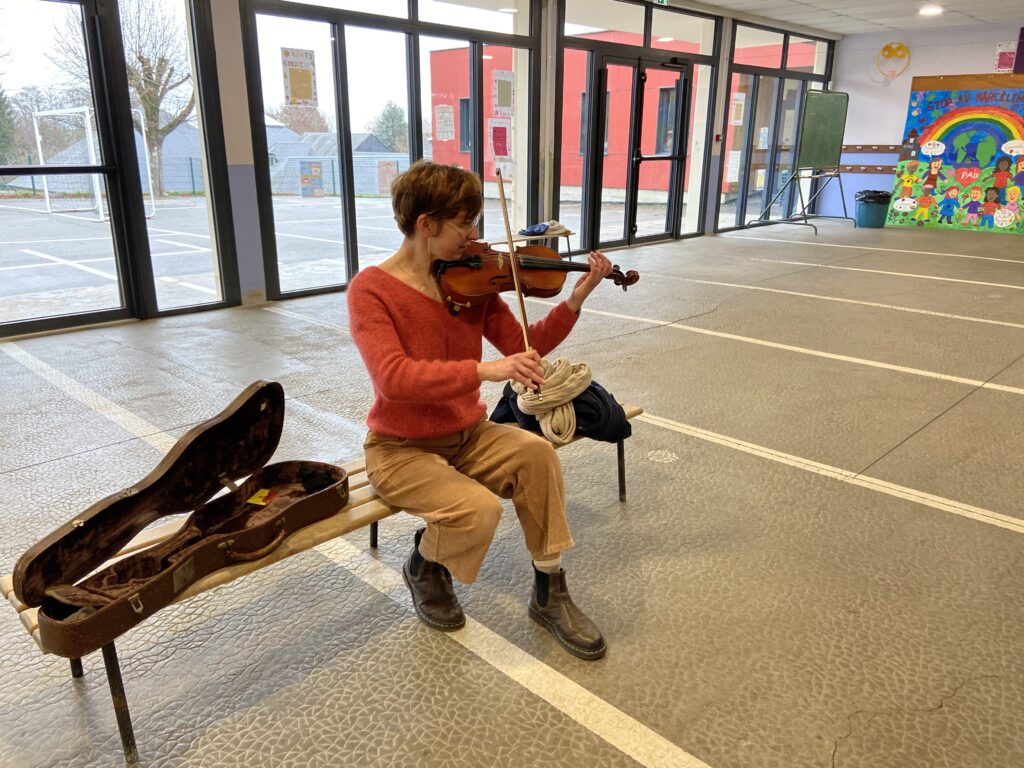 Mardi 16 et vendredi 19 décembre, ils ont pu découvrir 2 instruments de musique : la clarinette et le violon lors de 2 ateliers d’écoute présentés par Mme Durand et une maman d’élève. Ils ont joué à deviner des comptines à la clarinette et ils ont dansé une danse traditionnelle au son du violon.