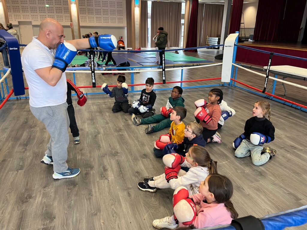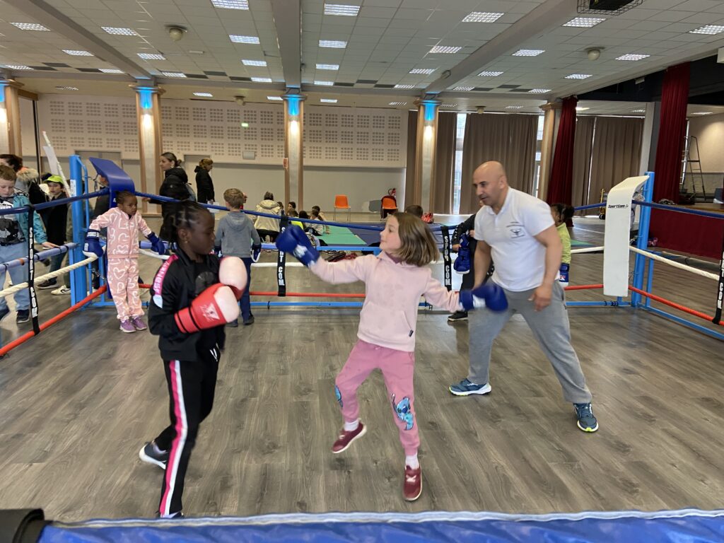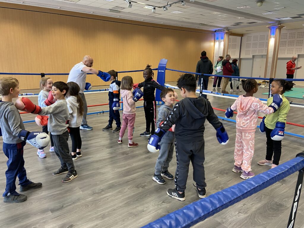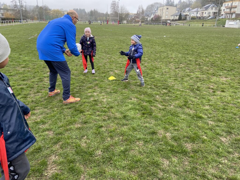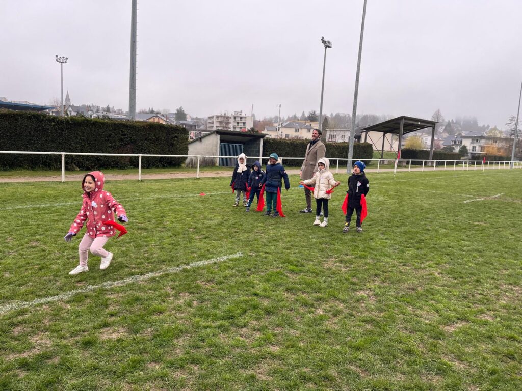 Malgré une météo maussade, tous les élèves ont pu découvrir des activités variées sur les nombreux sites installés autour du stade d’athlétisme d’Ussel. Au programme : rugby, boxe éducative, flag football, golf et pétanque.
