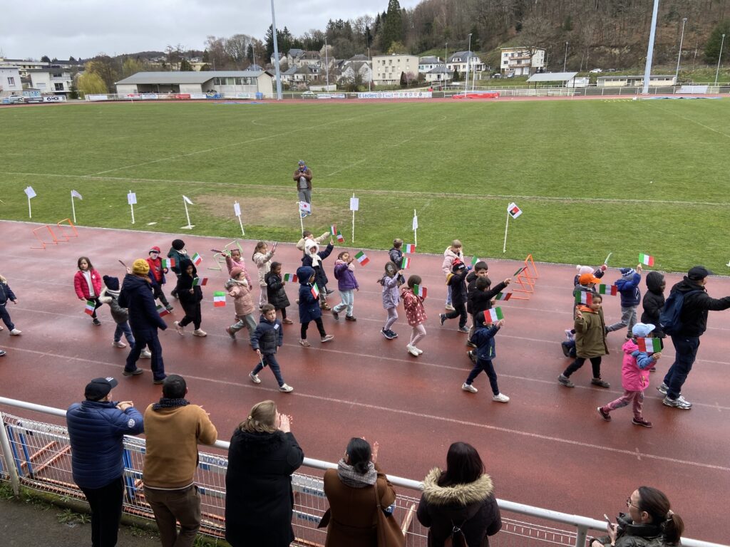 Les deux classes représentaient l’Italie et chacun a pu défiler avec son drapeau lors de la grande parade olympique. Félicitations aux sportives et aux sportifs et tous nos remerciements aux adultes accompagnateurs pour leur aide précieuse!