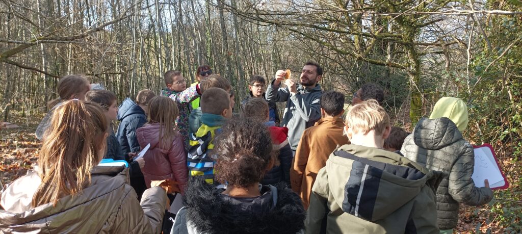 Mardi 3 février, Thomas Jacquement, animateur du Pays d’Art et d’Histoire Vézère Ardoise, avait donné rendez-vous à la classe de CE2-CM1 dans un bosquet, près de l’école.