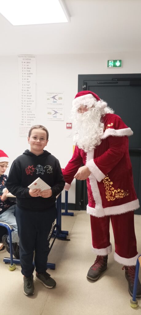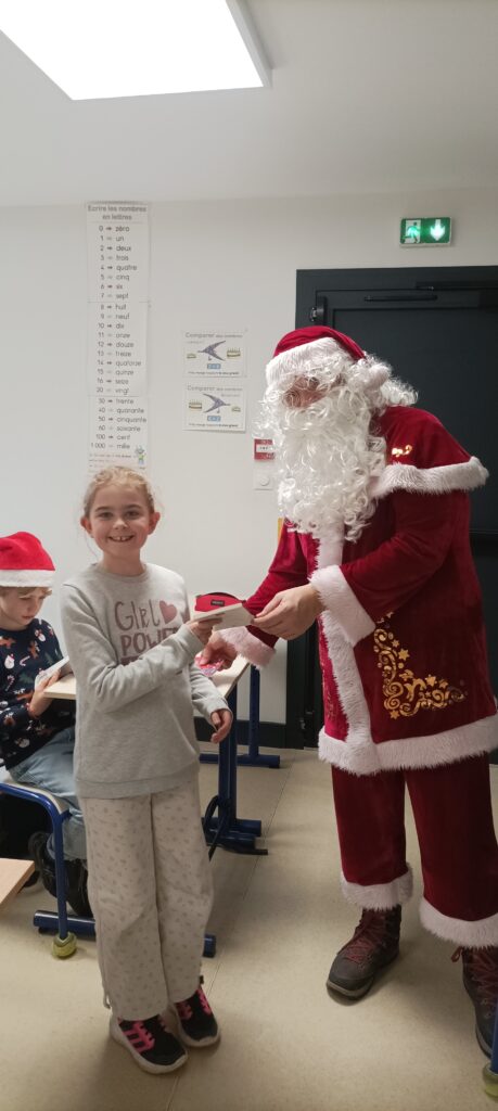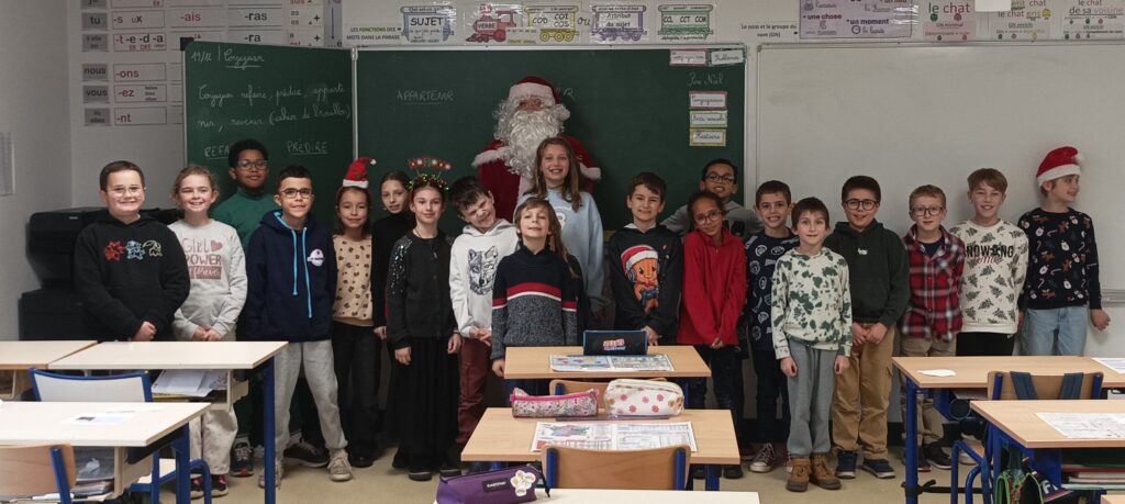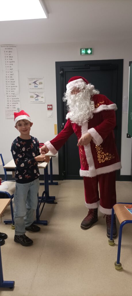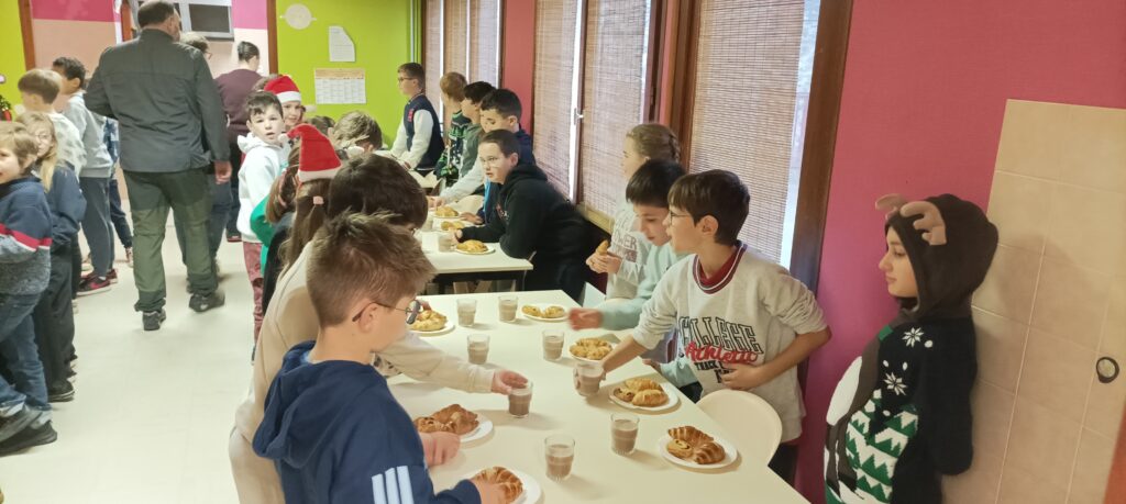 Vendredi 19 décembre, les élèves de l’école ont vécu une journée un peu particulière à la veille des vacances. Pour commencer, un bon goûter de Noël préparé par Patrice avec des viennoiseries et du chocolat chaud les attendait le matin.