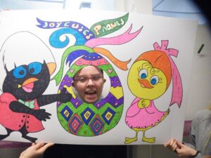 En avril, nous avons photographié nos visages, entourés de Caliméro et Priscilla.