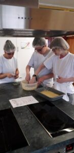 Les mercredis matin Ayamé, Cynthia et Houda participent à l’atelier cuisine.
