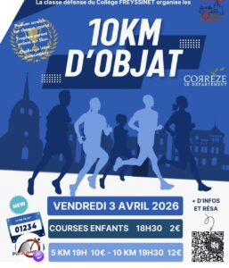 Vendredi 3 avril, la classe défense et l’association sportive du collège organisent les 10km d’Objat, une course ouverte à tous les coureurs amateurs et professionnels ! Comme l’année dernière, la course est organisée par notre collège mais fait partie des grandes courses du département. Plus de 400 coureurs sont attendus au parc municipal pour le …