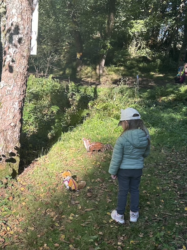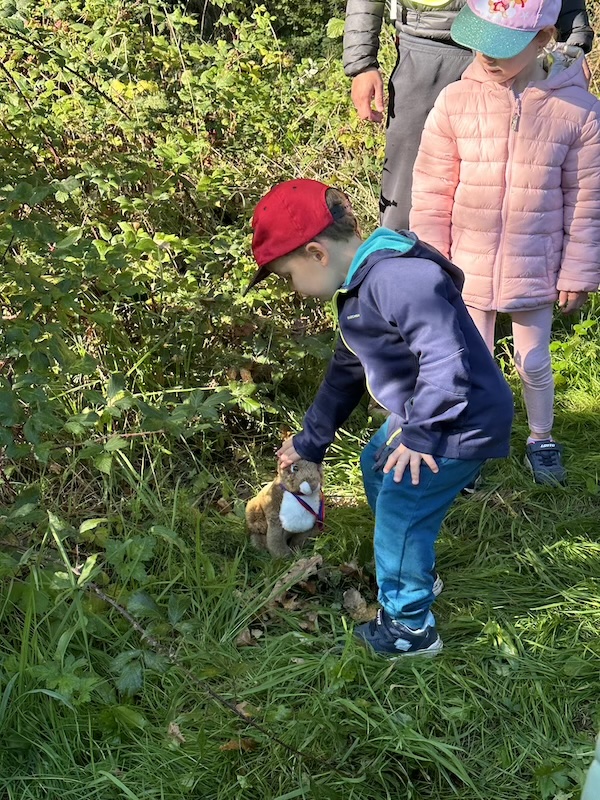 L’aboutissement de tous ces apprentissages eut lieu le jeudi 2 octobre, autour du lac de Vigeois, où nous avons effectué une randonnée de 4 km organisée par l’USEP. Des flèches accompagnées de doudous étaient positionnés sur notre trajet et leurs noms étaient écrits sur des médailles qu’ils portaient en collier. Nous avons pu croiser Bambi le faon, Boubou le hibou, Simba le lion, Roxy le renard, Panpan le lapin ou encore Noisette l’écureuil.