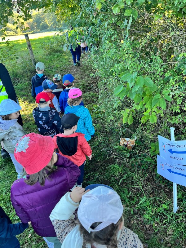 Au cours de plusieurs entraînements autour de l’école, nous avons parcouru des distances croissantes, matérialisées par des points de repère tels que l’Arbre Remarquable, le Petit Pont ou encore le Plan d’eau. Nous avons ainsi appris à nous déplacer, en toute sécurité, afin de se situer et explorer de nouveaux espaces.