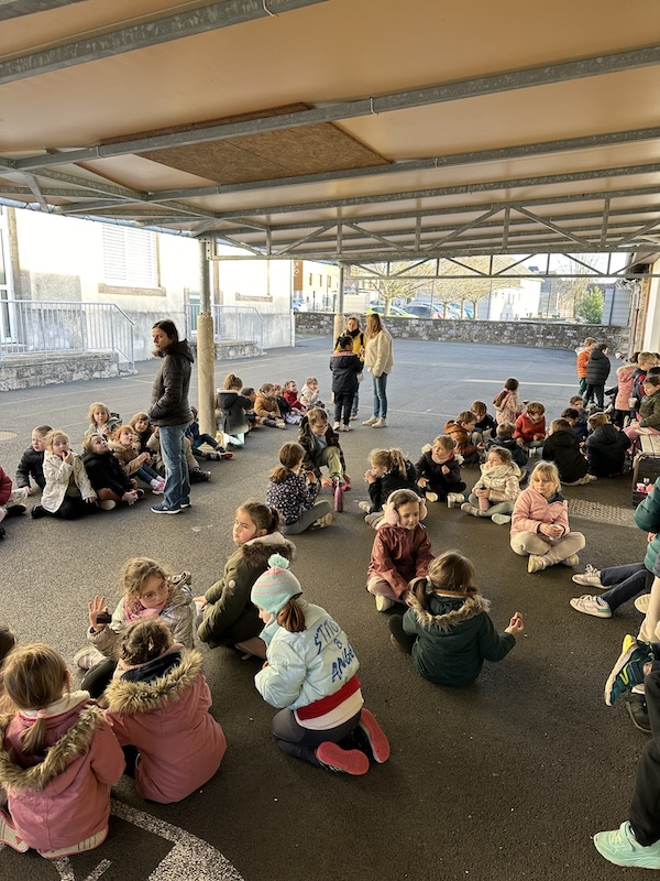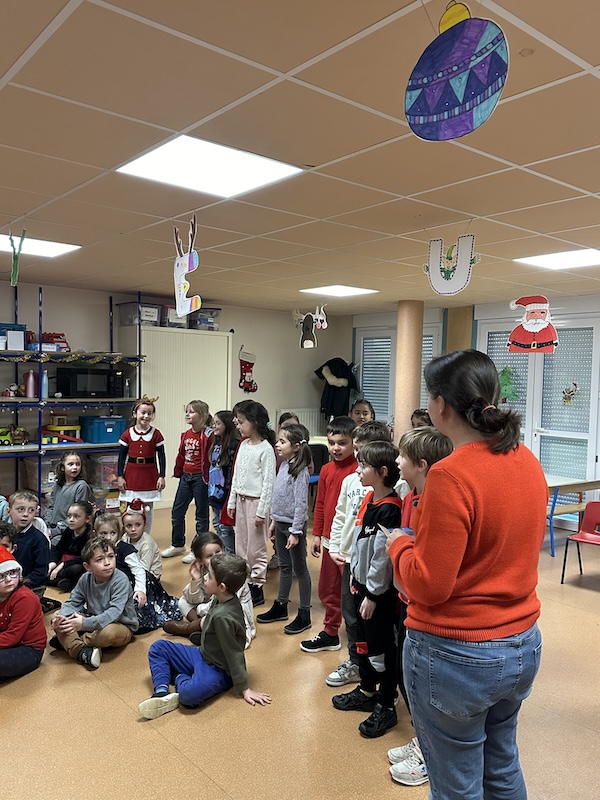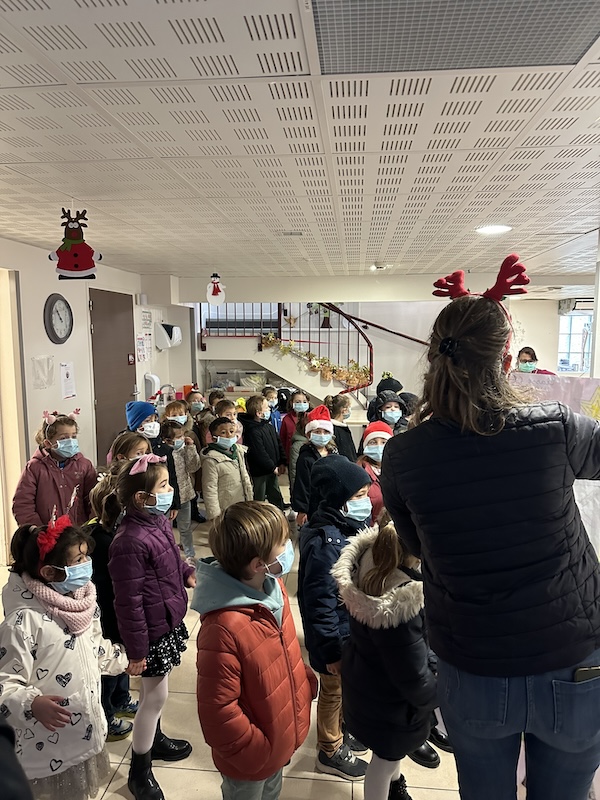 Les CE2 leur ont ensuite présenté un chant : Happyculteur. Un jeu de mots entre l’apiculteur, continuité de notre travail en cuisine autour du miel, et un cultivateur de bonheur (comme le Père-Noël !).