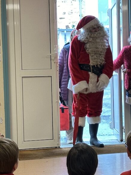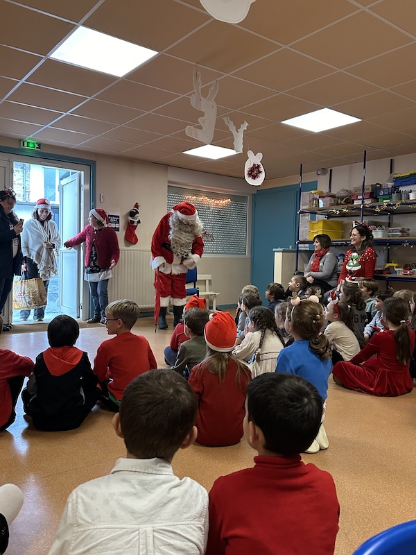 Nous avons eu l’honneur de recevoir la visite très spéciale et très attendue, juste avant les vacances de Noël, du fameux et de l’unique… Père-Noël ! Il était accompagné de ses fidèles lutins et d’une hotte bien remplie.