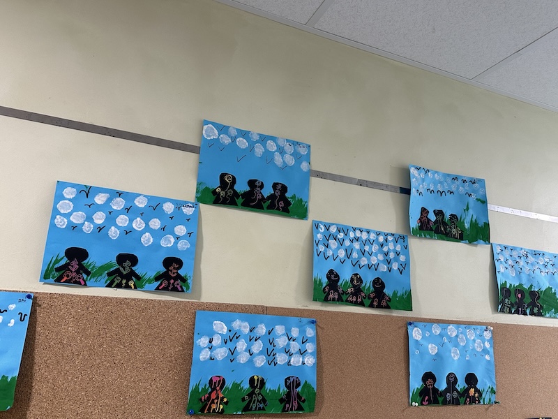 Le résultat était si saisissant, que nous étions obligés de les exposer. Cela a fait son effet dans le couloir, à côté des superbes productions des enfants de maternelle.