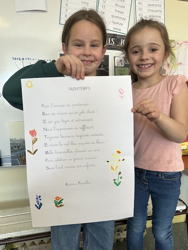 Tous ces détails nous ont été inspirés par notre poésie du mois, Printemps de Karine Persillet, soigneusement apprise et récitée tout au long de la période.