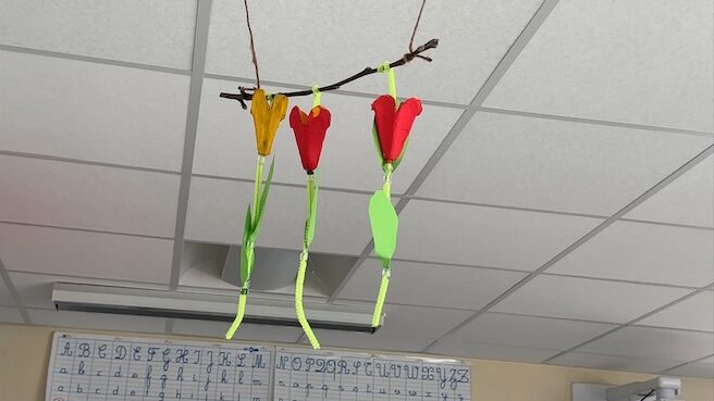 Pour accueillir le printemps, la classe de CP a redoublé d’énergie afin de parer l’école de jolies productions colorées, mais surtout fleuries.