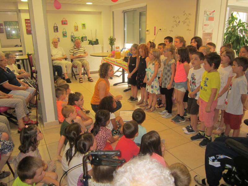 Les élèves de GS et de CE1 sont venus présenter leurs histoires et leurs chants aux résidents de l’EHPAD et du Vilaret d’Or. Les GS ont raconté trois histoires à l’aide de marionnettes. Les CE1 ont interprété trois chansons d’autrefois : « Ma p’tite chanson » de Bourvil, « Y’a d’la joie » de Charles Trenet et « Padam, padam » d’Edith Piaf. Pour terminer, les élèves des deux classes ont chanté le chant final du spectacle « Les jolies colonies de vacances ».